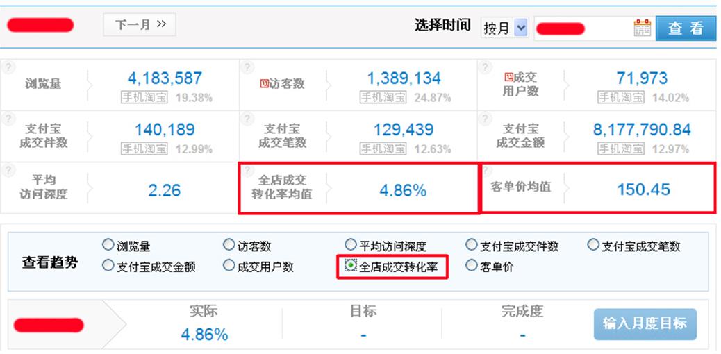如圖4的數(shù)據(jù)當(dāng)中,我們可以看到店鋪的總瀏覽量為4183587人,而訪客數(shù)量為1389134人,利用訪客數(shù)量除以總瀏覽量然后再乘以100%,算出了全店成交的轉(zhuǎn)化率為4.86%。當(dāng)然圖片也是為大家舉個例子,方便大家理解。我們自己的店鋪運營好的話轉(zhuǎn)化率也可以達到一個很高的值。