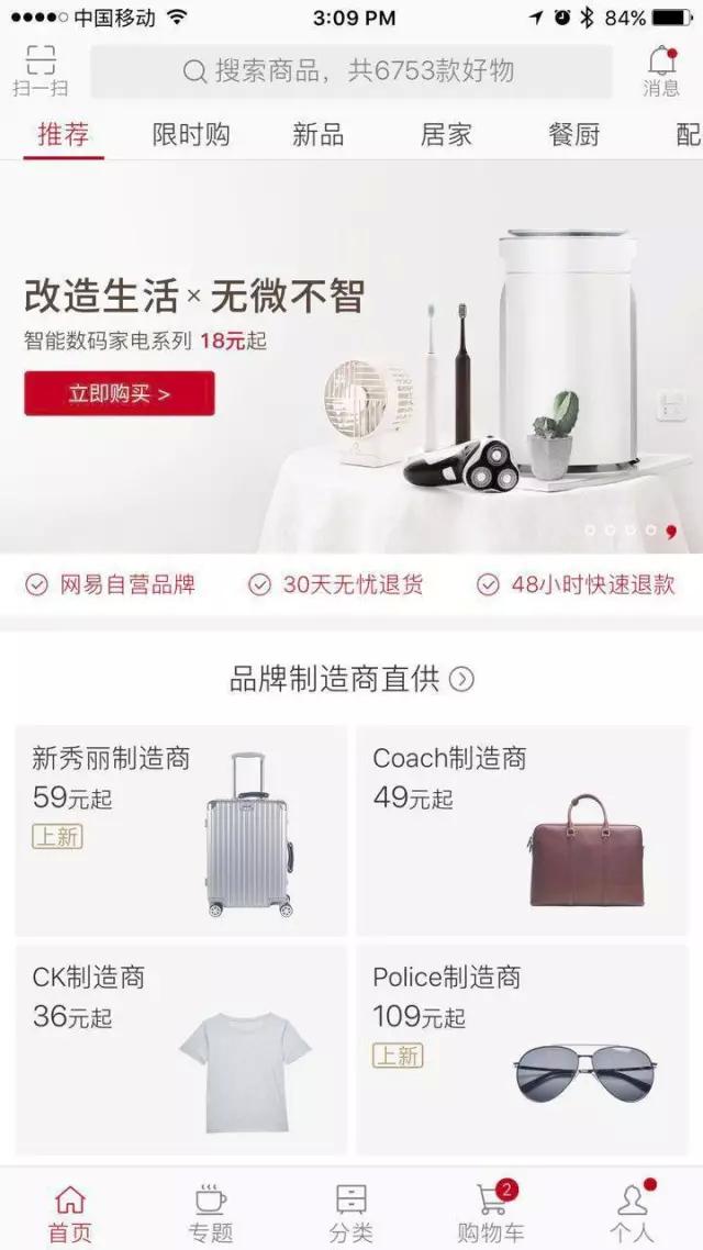 相對(duì)于米家,網(wǎng)易嚴(yán)選于2016年4月才面世,它采用ODM(原始設(shè)計(jì)制造商)模式的電商,一開始便以“好的生活,沒那么貴”為品牌理念,它的產(chǎn)品類別,設(shè)計(jì)風(fēng)格,APP和網(wǎng)站的界面風(fēng)格都不得不讓人想起無(wú)印良品。
