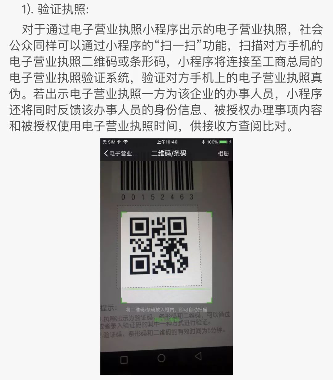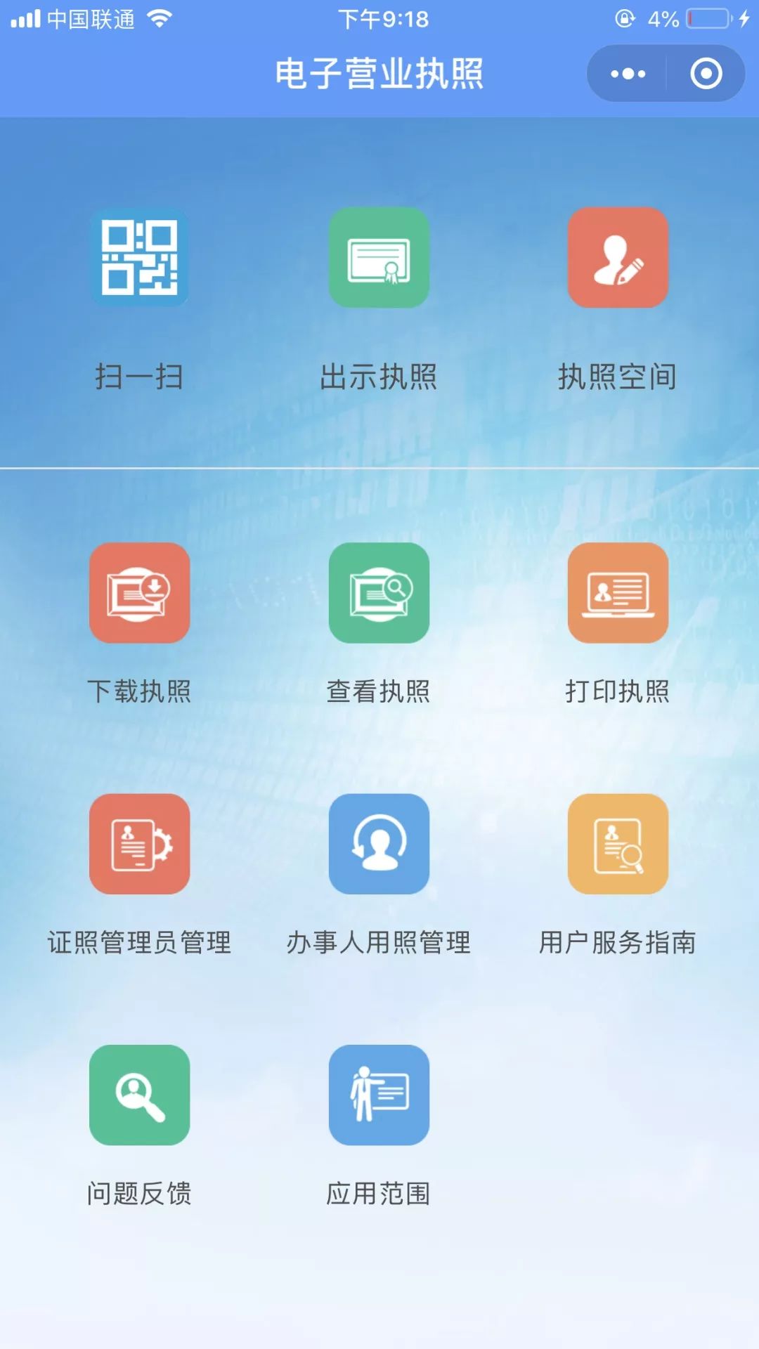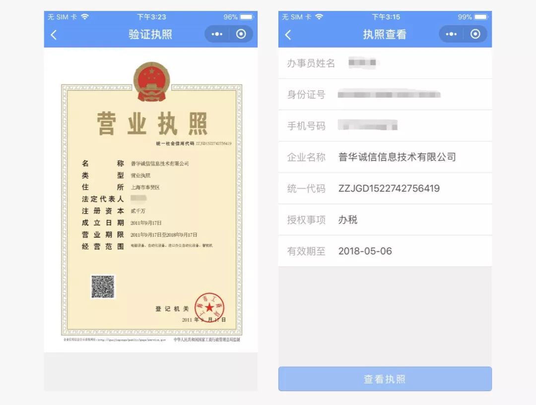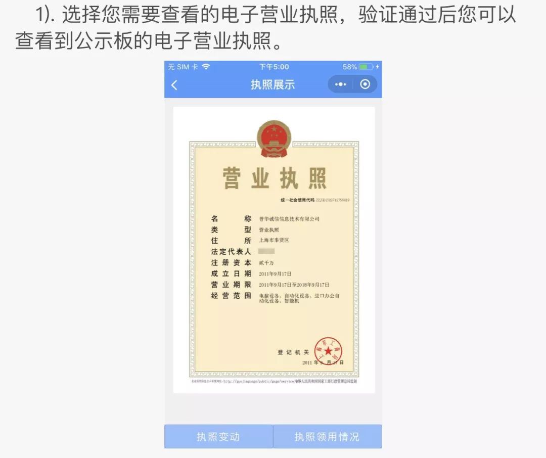 這就是微信電子營(yíng)業(yè)執(zhí)照小程序的界面了。