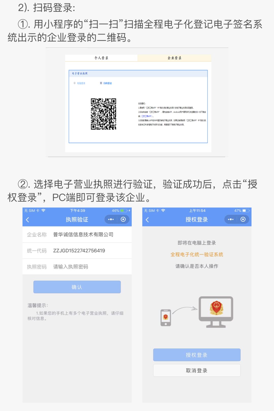 用到掃一掃功能對(duì)主要有:pc端掃碼登陸,驗(yàn)證電子營(yíng)業(yè)執(zhí)照,打印電子營(yíng)業(yè)執(zhí)照等三個(gè)功能。