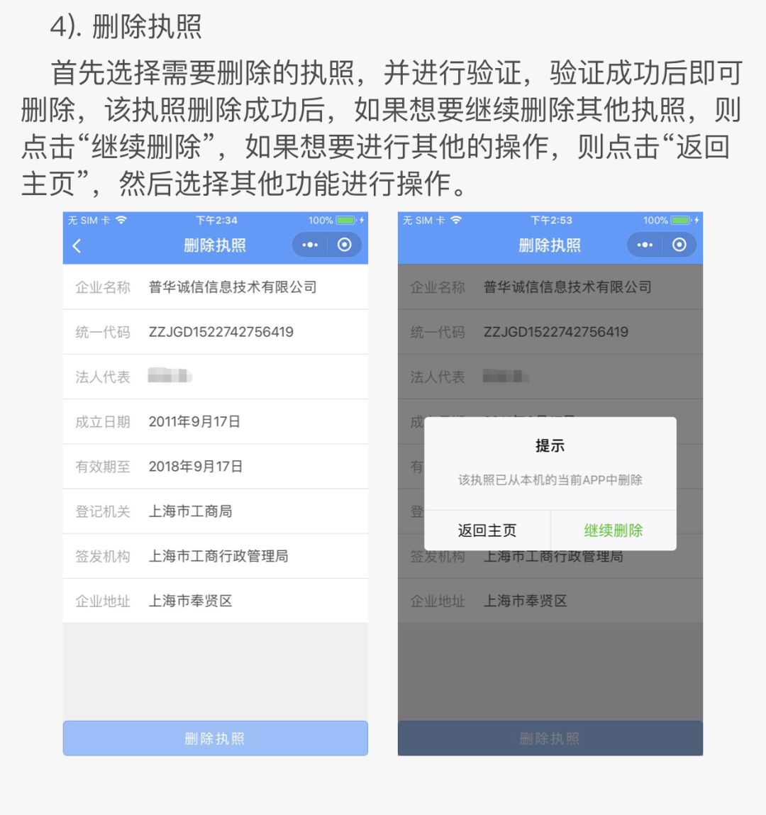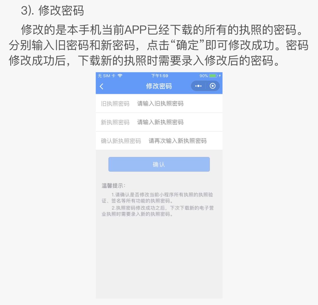執(zhí)照空間主要有本機(jī)執(zhí)照,掛失執(zhí)照,修改密碼,刪除執(zhí)照等操作。