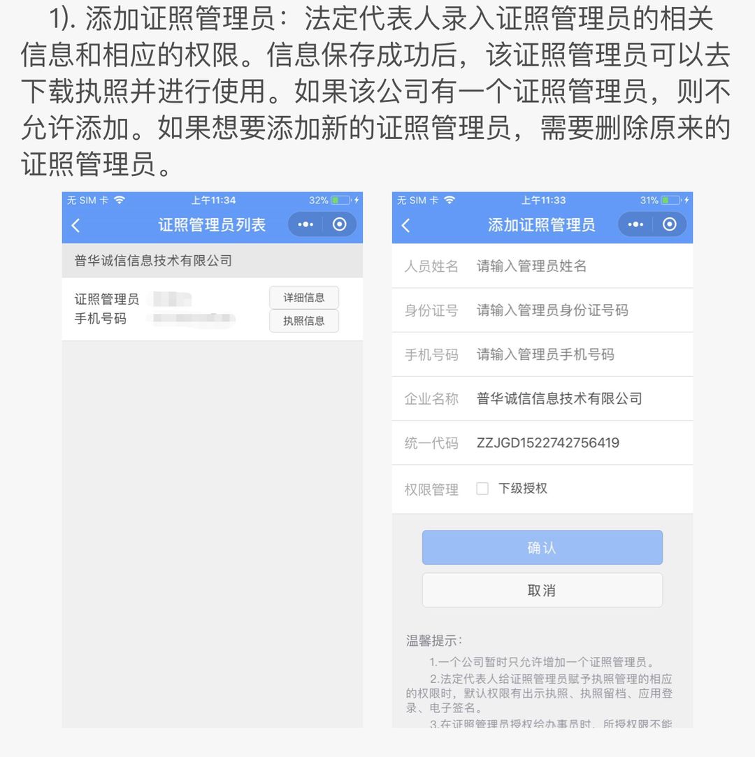 證照管理員:被法定代表人授權(quán)保管,持有,使用電子執(zhí)照的人員。