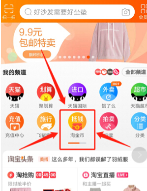 (1)我們打開(kāi)手淘首頁(yè),點(diǎn)開(kāi)“淘金幣”頁(yè)面。