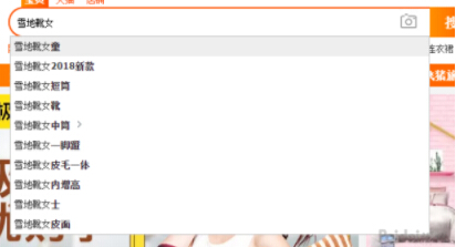 去淘寶首頁的搜索框里面搜索出雪地靴女的下拉關(guān)鍵詞。
