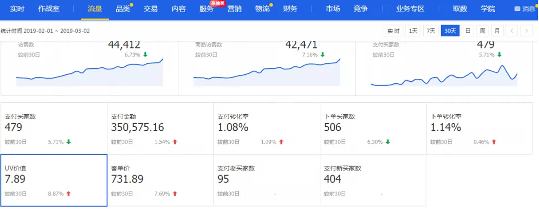13. 我們需要控制的數(shù)據(jù)是,如果每天訪客在1000以內(nèi),可以忽略轉(zhuǎn)化率。如果每天訪客3-5千,盡可能控制在優(yōu)秀水平,包括UV價值、單品轉(zhuǎn)化率、渠道和關(guān)鍵詞轉(zhuǎn)化率,其中,關(guān)鍵詞可以通過生意參謀查詢,或者可以計算對手的關(guān)鍵詞轉(zhuǎn)化率。