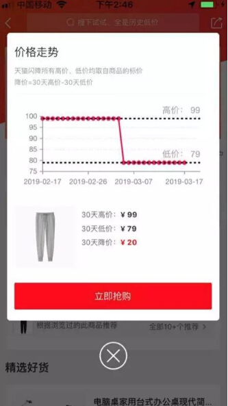 從商品表面,天貓閃降商品降價=30天高價-30天低價。天貓閃降所有高價、低價均取自商品的標價,用戶可在“歷史價格”里查看該商品30天高價和30天低價,保證所購買的商品價格均為30天內的最低價。