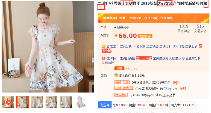 接下來就直接進入實操,上面我們找到一個目標詞【網(wǎng)紅連衣裙 百搭 顯瘦】