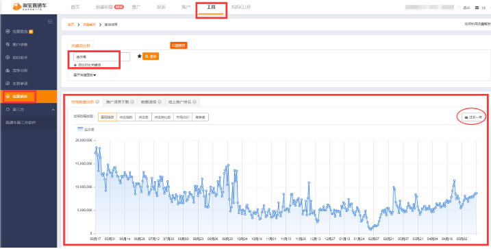 怎么分清產品的淡旺季那就需要通過數據去分析了這里要借助免費工具直通車里面的流量解析如下圖進入到流量解析頁面搜索產品的類目比如連衣裙把數據時間調成過去一年作為參考觀看整體一年的一個展現趨勢起伏還是比較明顯的每個下跌都對應的不同的月份從下面的圖片可以看到連衣裙的高峰期是在五月份至九月份所以現在需要大力去推廣連衣裙了在爆發(fā)期前夕的三四月份屬于這個類目的一個成長期成長期寶貝適合做什么呢當然是做基礎銷量產品內功了為高峰期做準備不要到旺季了其他同行都在推廣了你還在破零那肯定趕不上了。所以一定要提前做好準備。