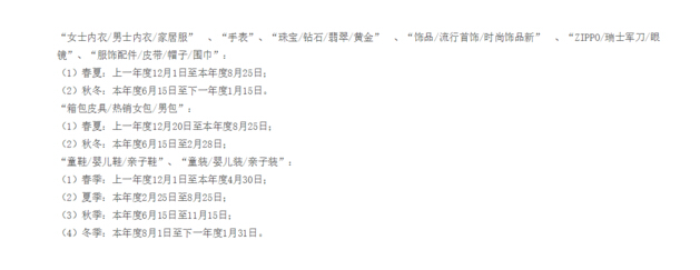 同時,服飾類商品的屬性要求是當年當季。具體要求如下: