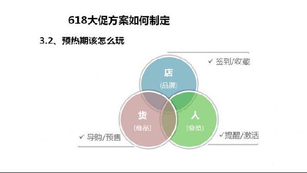 這個(gè)時(shí)期我們的工作主要圍繞店鋪品牌、商品以及店鋪會(huì)員三個(gè)方向出發(fā), 結(jié)合時(shí)期的特性做針對(duì)這三個(gè)核心方向進(jìn)行一系列的活動(dòng)。在預(yù)熱期主要是為了增加大促的收藏,提前優(yōu)化618大促的購(gòu)買,因此,我們的營(yíng)銷重點(diǎn)突出表現(xiàn)在大促活動(dòng)氛圍的營(yíng)造,加深買家印象,最好能夠借助活動(dòng)引導(dǎo)買家在預(yù)熱期間到大促當(dāng)天能形成重復(fù)訪問(wèn)。