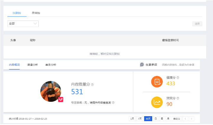 這個是微淘粉絲管理后臺,微淘號可以直接查看賬戶粉絲結(jié)構(gòu)情況并進(jìn)行處理,粉絲主要分為三種健康粉絲、沉默粉絲、異常粉絲等,大家可以在自己粉絲管理后臺查看店鋪粉絲的一個健康情況,并進(jìn)行清理和維護(hù)。主動管理店鋪粉絲,這樣也可以提升內(nèi)容營銷被推薦的幾率!