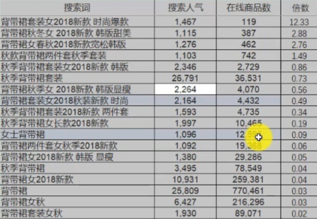 神詞公式=1天的搜索人氣/在線商品數(shù) (單日的搜索人氣不要低于500,小類目除外)