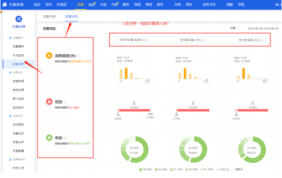 首先要確認(rèn)自己店鋪的人群,在生意參謀---流量---訪客分析里去看,我找回來這個款,是不是剛好適合我店鋪人群。