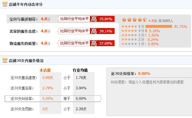 其中服務(wù)分為很多種,有店鋪DSR評分、旺旺響應(yīng)速度、退款數(shù)量和速度、店鋪糾紛率等等,其中每個細(xì)分都要會好,特別其中DSR評分,有的同學(xué)可能不太重視,因?yàn)樵谄綍r的時候可能根本就看不到它有什么明顯的變化,但是一旦DSR評分一下滑太多,后期也會比較難進(jìn)行一個提升。所在在平時的時候就要多關(guān)注這方面,