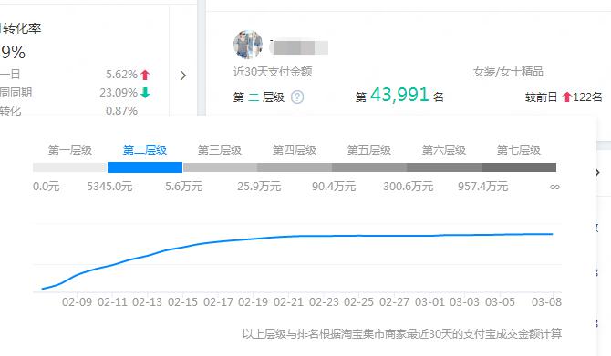 在店鋪的層面上有也會有相應(yīng)的一些影響,比如說店鋪的層級、訂單的客單價、動銷率、旺旺響應(yīng)速度和在線時長等等一些因素,特別是其中的店鋪層級,不同的店鋪層級它們會有不同的流量比例分配,比如說在第二層級的時候,每天會有一個最高流量限定,當(dāng)我們到達(dá)第三層級的時候,就會給一個更高的流量限定量,那么在平時的時候,我們需要盡量的去提高店鋪銷量,來提升我們的店鋪層級,來獲得更多的流量資源。