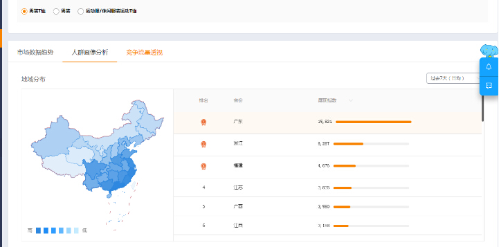 在工具——流量解析——搜索產(chǎn)品核心詞——地域分布
