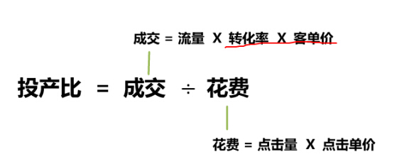 投產(chǎn)比=成交/花費。