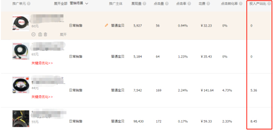 我們看這幾個推廣關(guān)鍵詞,投產(chǎn)比,高于2的,賺錢,那我們給它加價,低于2的,有點虧我們給它降價。