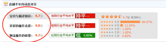 淘寶天貓對(duì)這個(gè)的權(quán)重一直在增加,這個(gè)也是你店鋪綜合服務(wù)的結(jié)果體現(xiàn)。我們盡量不要讓這個(gè)評(píng)分低于4.7以下,不然就會(huì)飄綠,而決定新品搜索扶植多少一個(gè)非常重要的因素就是你店鋪的綜合質(zhì)量得分,得分越高,寶貝獲得的機(jī)會(huì)就越多。