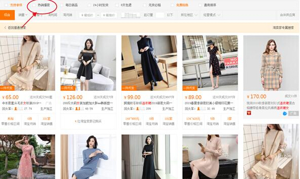 然后選擇熱賣商品,就可以看到近期銷量比較好的款式。如果我們對產(chǎn)品的質(zhì)量不放心,也可以在阿里巴巴中購買一兩件樣品看一下質(zhì)量,確定之后再大量進貨。
