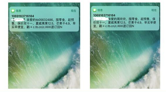 大家看下下圖的兩條短信,短信大部分內(nèi)容相同,那么哪一條會更加容易一瞬間引起我的興趣呢?