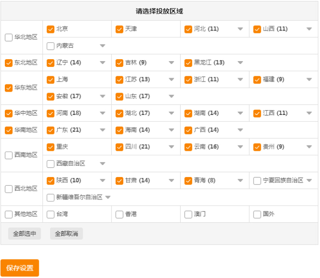 設(shè)置投放區(qū)域,一般情況下,標(biāo)準(zhǔn)投放,考慮到店鋪的實際情況,可以選擇海外、港澳臺,以及偏遠地區(qū)等不投放。