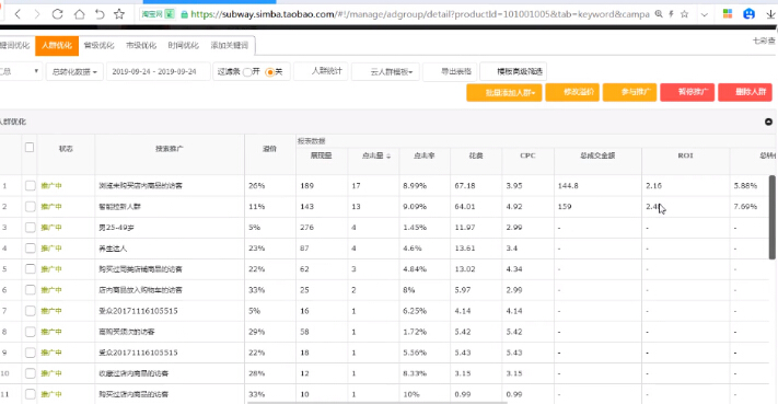 直通車工具,可以從關(guān)鍵詞、人群、市級地域、時間、四大模塊讓你更精細(xì)化的優(yōu)化直通車,清楚的了解關(guān)鍵詞的表現(xiàn)情況,展現(xiàn)量和點擊量的行業(yè)占比,可以了解此關(guān)鍵詞的行業(yè)占有量。