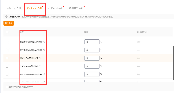 店鋪人群標(biāo)簽清晰化之后,可以將人群精確到我們店鋪的合適的 客戶群體中,而利用搜索人群,可以針對受眾群體來進行重點投放,區(qū)分出價,從而減少推廣成本,精細化推廣費用,轉(zhuǎn)化效果也會是比較好的。同時,對于店鋪的其他屬性人群,比如瀏覽未購買的訪客,收藏,加購過產(chǎn)品的訪客以及瀏覽過相似產(chǎn)品或者店鋪的訪客組,我們的溢價都可以按照具體情況來進行相應(yīng)的設(shè)置,可以為了提高展現(xiàn)而進行針對性的設(shè)置不同的溢價比例,這樣可以大大的提高店鋪流量的轉(zhuǎn)化率。