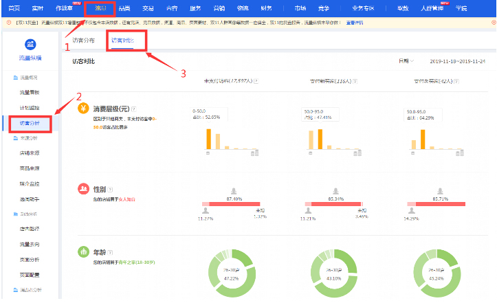 在生意參謀里面去查看。生意參謀---流量---訪客分析---訪客對(duì)比。