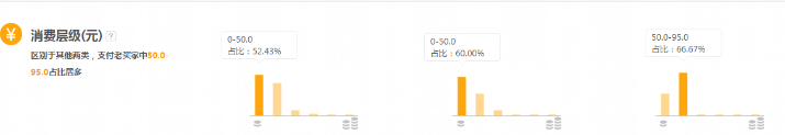 如果出現(xiàn)消費(fèi)層級(jí)很亂,不集中?;蛘呤窍M(fèi)層級(jí)跟店鋪產(chǎn)品的價(jià)格完全不屬于同一個(gè)價(jià)格帶那就是人群不精準(zhǔn)。就舉一個(gè)例子:如果店鋪里面的產(chǎn)品的價(jià)格都是100元以上,但是未支付買(mǎi)家消費(fèi)層級(jí)占比最高的是20--50的價(jià)格帶,這種很明顯就是不對(duì)的。