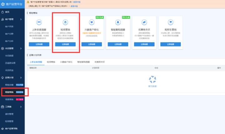 短信維護(hù);可以通過客戶運(yùn)營平臺來進(jìn)行短信營銷的設(shè)置;