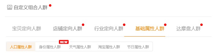 直通車(chē)人群分類(lèi)為寶貝定向人群、店鋪定向人群、行業(yè)定向人群、基礎(chǔ)屬性人群、達(dá)摩盤(pán)人群這五個(gè)板塊(當(dāng)然下面還有個(gè)系統(tǒng)推薦人群板塊,不過(guò)系統(tǒng)推薦人群也是從上面的人群里面去推薦,我就不多說(shuō)了)。