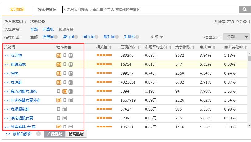 關(guān)鍵詞相關(guān)性:關(guān)鍵詞的相關(guān)性,簡單來說就是跟我的產(chǎn)品屬性的相關(guān)性,我們都知道淘寶的搜索系統(tǒng)是非常牛逼的,當(dāng)買家搜索關(guān)鍵詞的時候回對應(yīng)推薦出與關(guān)鍵詞相關(guān)度非常高的產(chǎn)品,很多人在優(yōu)化產(chǎn)品標(biāo)題的時候,看到淘寶下啦框推薦的屬性詞非常多,想想湊個字?jǐn)?shù)就全部加進(jìn)去了,但是實(shí)際上這其中有很多的關(guān)鍵詞是非常不合適的!,這個時候其實(shí)我們可以將這個屬性詞直接放在淘寶搜索框去搜索,然后去對比展現(xiàn)出來的產(chǎn)品風(fēng)格跟咱們的產(chǎn)品風(fēng)格等是否一致,如果不一致那么就說明這個關(guān)鍵詞是不合適的,這個時候那么這個關(guān)鍵詞就可以摒棄掉了。通過這種方式我們其實(shí)可以確定自己店鋪的產(chǎn)品核心詞,然后在此核心詞的基礎(chǔ)上去做延伸,這樣就更好了。