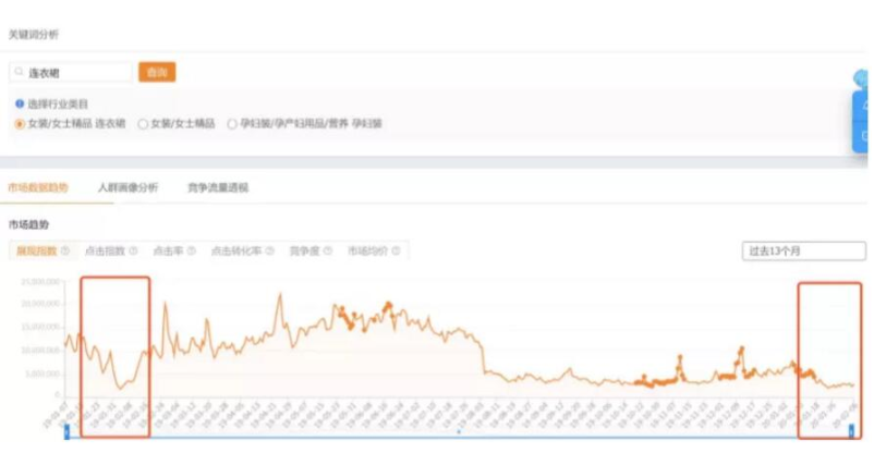 而服飾箱包類幾乎沒(méi)有回升回升之勢(shì),例如:連衣裙、女鞋類目,依然處于流量低迷狀態(tài)。