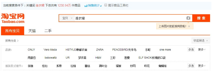我們開始就說了,知己知彼百戰(zhàn)百勝,怎么百戰(zhàn)百勝呢?要做到知己知彼。其中知己就是先要充分了解自己的產(chǎn)品。同一個(gè)類目會(huì)有好多產(chǎn)品,每個(gè)產(chǎn)品都有自己的獨(dú)特的屬性,沒有一件產(chǎn)品可以滿足所有人群的需要。個(gè)體的差異化,對(duì)于同一類產(chǎn)生了不一樣的需求。打個(gè)比方,如果說你是賣連衣裙。我們打開淘寶首頁,我們搜連衣裙,我們會(huì)發(fā)現(xiàn)女裝春裝的寶貝數(shù)有1230.94萬。