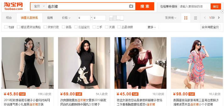 雖然我們搜索連衣裙,會(huì)有上千萬的寶貝。但是我們一定要看到,衣服的的款式、風(fēng)格、品牌、材質(zhì)、每個(gè)人的購買熱點(diǎn)等是非常多樣性的。在這里只有和你相同,相似的寶貝才有可能和你有競(jìng)爭(zhēng)的交集。這樣經(jīng)過篩選后競(jìng)爭(zhēng)對(duì)手會(huì)少很多!我們看下圖,“連衣裙”這個(gè)千萬寶貝的大類目,在我們限制條件之后,我們發(fā)現(xiàn),類似的寶貝已經(jīng)只有39頁。