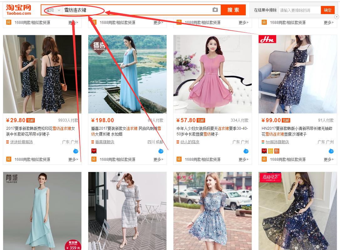 現(xiàn)在我們要學(xué)會(huì)的是通過(guò)一套系統(tǒng)性的方式來(lái)找到精準(zhǔn)的關(guān)鍵詞, ,我為什么要找到精準(zhǔn)關(guān)鍵詞, ?因?yàn)榍宄?,關(guān)鍵詞讓自己的新品獲得更優(yōu)質(zhì)的展現(xiàn)機(jī)會(huì), 因?yàn)槲覀円佬缕范紩?huì)有展現(xiàn)的機(jī)會(huì), 為什么有些新品能夠有更多的人去點(diǎn)擊它, 甚至就能夠直接拍下付款, 有些新品獲得展現(xiàn)機(jī)會(huì)之后連點(diǎn)擊的人數(shù)都很少, 說(shuō)款式自身的原因之外最重要就是沒(méi)有獲得優(yōu)質(zhì)的展現(xiàn)機(jī)會(huì), 而優(yōu)質(zhì)的展現(xiàn)機(jī)會(huì)能夠讓產(chǎn)品在精準(zhǔn)人群面前獲得展現(xiàn), 能夠讓產(chǎn)品在適合他的人群面前獲得展現(xiàn), 而只有人群更精準(zhǔn), 人群更加優(yōu)質(zhì), 我們的產(chǎn)品才能夠獲得更多的點(diǎn)擊, 打個(gè)比方說(shuō), 那產(chǎn)品可以做大碼連衣裙, 也可以作雪紡連衣裙, 但是搜索這兩個(gè)詞的人群很明顯有差距,。