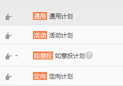 GPS計劃管理里面又分為4個模塊計劃:通用計劃,活動計劃(鵲橋活動),如意投計劃和定向計劃