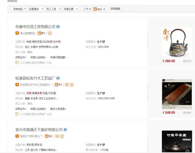 首先進(jìn)入1688的首頁,在貨源位置選擇供應(yīng)商,然后輸入你想代理的產(chǎn)品類目的核心詞,然后會自動出現(xiàn)該類目的關(guān)鍵詞里面,自己去選擇一個自己認(rèn)為匹配度最大最適合自己的就可以了,然后會出來很多商家,而我選擇是的茶壺,我們也需要做一下篩選!
