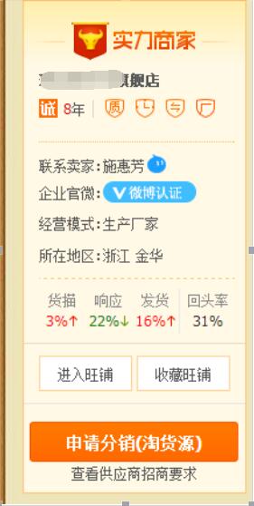在這些都確定沒有任何問題后,然后在看店鋪導(dǎo)航里是否有“代理加盟”這一項,這是最為重要的!因為有的供應(yīng)商只是要你下載數(shù)據(jù)包就沒了,店鋪的具體相關(guān)介紹都沒有很多的了解!這樣的供應(yīng)商就不用去看了!因為這樣的為這樣的供應(yīng)商代理會出現(xiàn)很多的問題,比如運(yùn)費(fèi)問題,退換貨問題,運(yùn)費(fèi)怎么算,由誰來出?發(fā)貨時間?什么快遞?偏遠(yuǎn)地區(qū)怎么處理?等等。如果是什么都不說清楚就可以直接代理的,大家就可以不用看了!