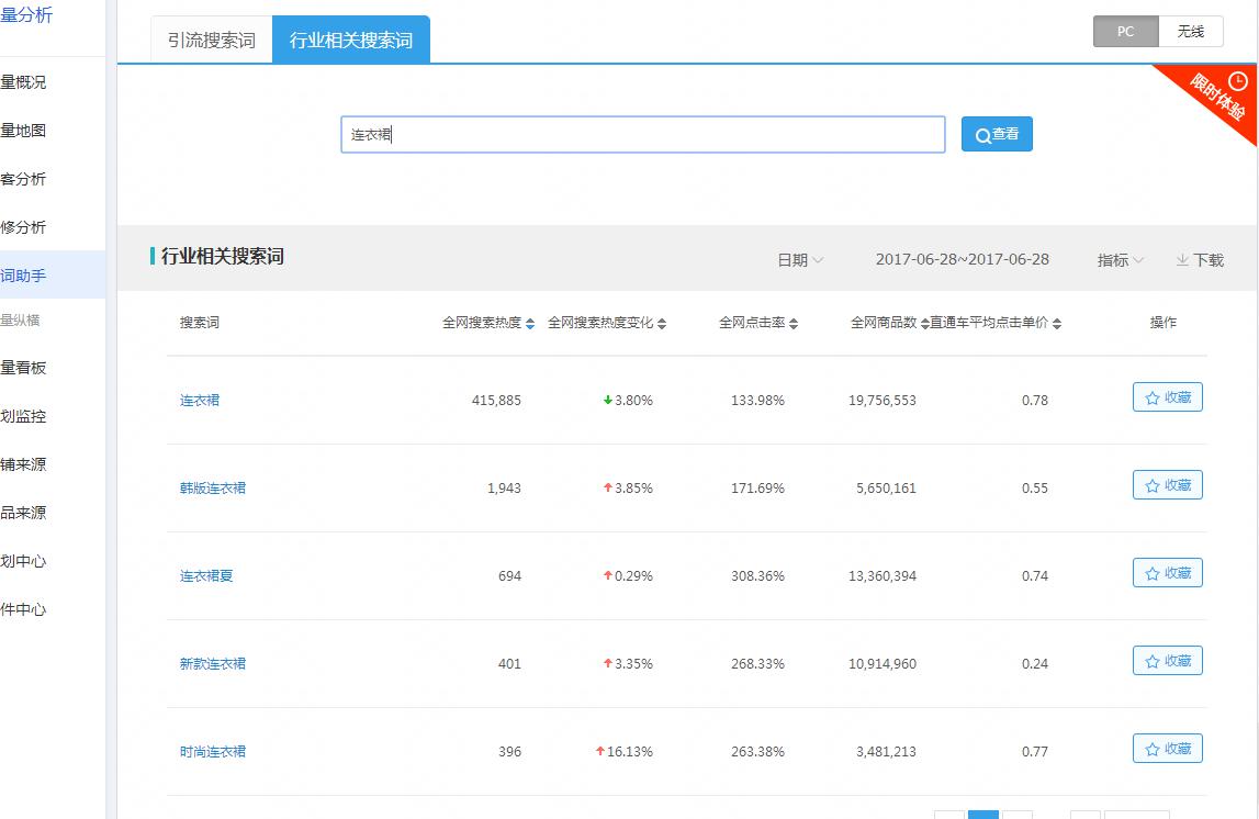 如上圖我們可以直接搜索我們的行業(yè)相關(guān)詞,然后我們就會看到一些行業(yè)相關(guān)搜索詞的全網(wǎng)搜索熱度、全網(wǎng)搜索熱度變化、全網(wǎng)點擊率、全網(wǎng)商品數(shù)、直通車平均點擊單價。這邊我們可以收藏二十個以上的搜索詞來進行比對,可能還有人說之前可以用生e經(jīng)來查看整個行業(yè)數(shù)據(jù),現(xiàn)在是找不到或者用不了了。這邊表示不太清楚,可能是系統(tǒng)屏蔽了。(看數(shù)據(jù)的時候也可以比對下屬性尤其是潛力屬性)
