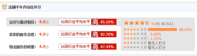 產(chǎn)品描述相符性,賣家服務(wù)態(tài)度,產(chǎn)品發(fā)貨速度,,這些東西都是我們可以控制的,基礎(chǔ)數(shù)值小的時(shí)候會(huì)很明顯的顯示,但是數(shù)據(jù)大了后波動(dòng)就不再明顯,一旦出現(xiàn)連續(xù)下滑的現(xiàn)象也會(huì)影響到店鋪的流量,所以我們也是要時(shí)刻注意他。在這里有句題外話:各位賣家一定要注意自己的基礎(chǔ)動(dòng)態(tài)分,使他一直飄紅。尤其是天貓賣家,天貓DSR值沒(méi)有達(dá)標(biāo)會(huì)在合同終止期被清退!不會(huì)被續(xù)簽 。