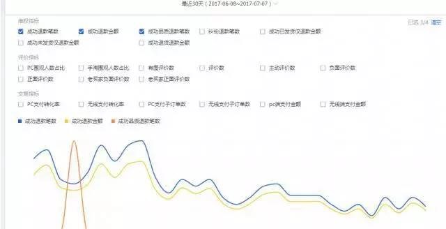 退款率:這個(gè)指標(biāo)是指最近30天內(nèi),退款成功筆數(shù)/支付寶支付子訂單數(shù),退款包括售中和售后的僅退款和退貨退款。這個(gè)指標(biāo)可以看到你自己產(chǎn)品和行業(yè)的均值情況,一般需要比行業(yè)均值低。如果你的產(chǎn)品高于行業(yè)均值的話,那你就要思考為什么產(chǎn)品的退貨率這么高?你要讓售后客服去了解為什么?是哪方面的問題?有沒有解決的辦法?