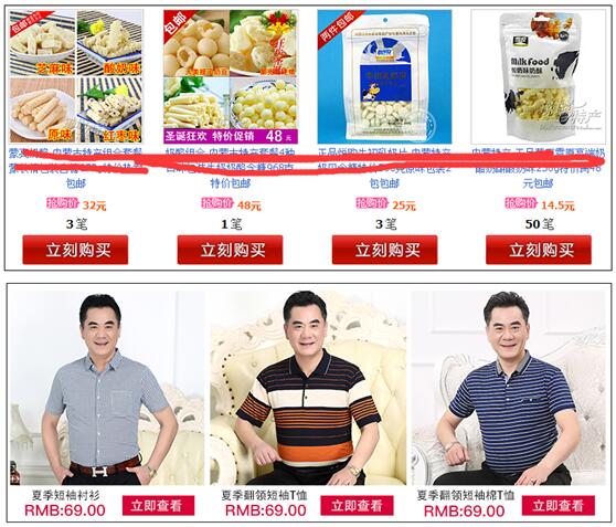 這應(yīng)該是大家見得比較多的關(guān)聯(lián)銷售的類型對(duì)吧,我們管這種關(guān)聯(lián)銷售叫做“羅列展現(xiàn)”式關(guān)聯(lián)銷售??赡艿谝粡埩闶车膱D片還好一點(diǎn)兒,對(duì)于消費(fèi)者而言可能在買牛肉干的時(shí)候,順便再買點(diǎn)兒奶酪什么的;但是第二張圖,大家會(huì)發(fā)現(xiàn),這種關(guān)聯(lián)銷售最主要的作用往往并不是提高客單價(jià),而是在提高轉(zhuǎn)化率(不買進(jìn)店寶貝,買別的寶貝)、降低跳失率(多看幾件別的寶貝,選一下)、提高店鋪停留時(shí)間幫助更大。