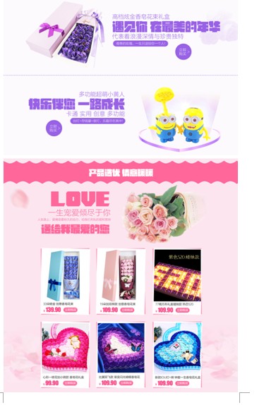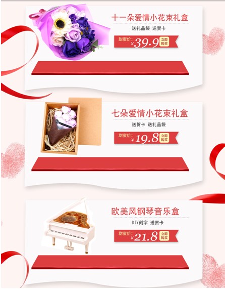 如圖10將活動分為了送男友專區(qū)、送女友專區(qū)和裝飾擺件專區(qū),很清晰的例舉出了不同的專區(qū),方便客戶對想要的產(chǎn)品進(jìn)行選擇購買。可以說很貼心的考慮到了客戶的購買心理。
