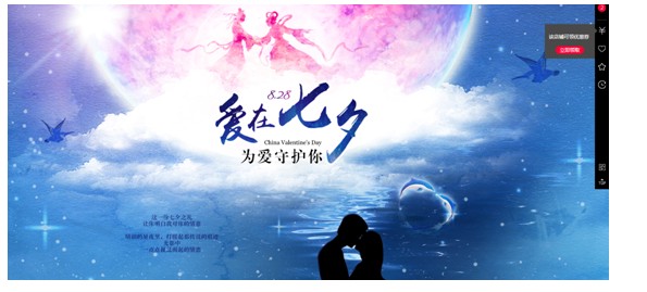 和很多活動一樣,七夕節(jié)也有他的專屬活動頁面,也許很多賣家會認(rèn)為制作專屬頁面真的是白費功夫,其實并不是這樣。就像我們做實體店營銷的時候,一樣需要打出各種廣告和一些裝飾,來烘托活動的氣氛。淘寶店鋪也是相同的邏輯,通過制作符合本次節(jié)日的活動專題頁面,通過大量的活動海報來吸引客戶,讓客戶感受到活動的氛圍從而促進(jìn)下單和購買。這就是為什么每到一個節(jié)日,大的商家們都紛紛制作活動專題,紛紛調(diào)整活動海報,來讓店鋪更具吸引力和競爭力的原因了。