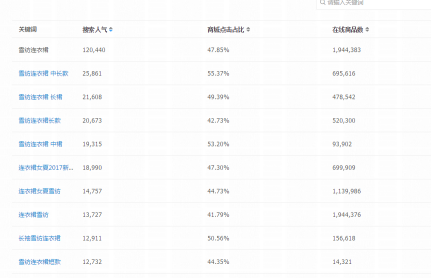 商城點(diǎn)擊占比指的是在所選的終端(PC或無線)上,當(dāng)用戶搜索關(guān)鍵詞后出現(xiàn)的搜索結(jié)果中,點(diǎn)擊天貓店鋪寶貝的次數(shù)/點(diǎn)擊所有(天貓店鋪+淘寶店鋪)寶貝的次數(shù)。那么。如果你是一個淘寶店鋪,你是否需要去選擇商城點(diǎn)擊占比低的詞呢?很明顯,是的,這就是市場競爭。