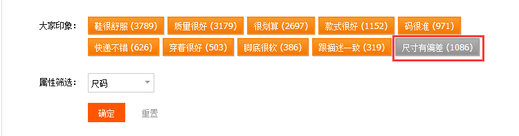 還可以根據(jù)對(duì)手的評(píng)價(jià)標(biāo)簽、制定評(píng)價(jià)內(nèi)容、問大家、詳情頁的利益描述這些在很大的程度上都是會(huì)去影響到轉(zhuǎn)化率的。而當(dāng)時(shí)我接手的時(shí)候主要就是這個(gè)問題尺寸不符合的標(biāo)簽