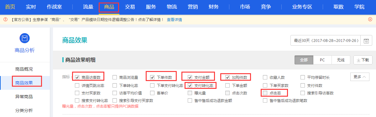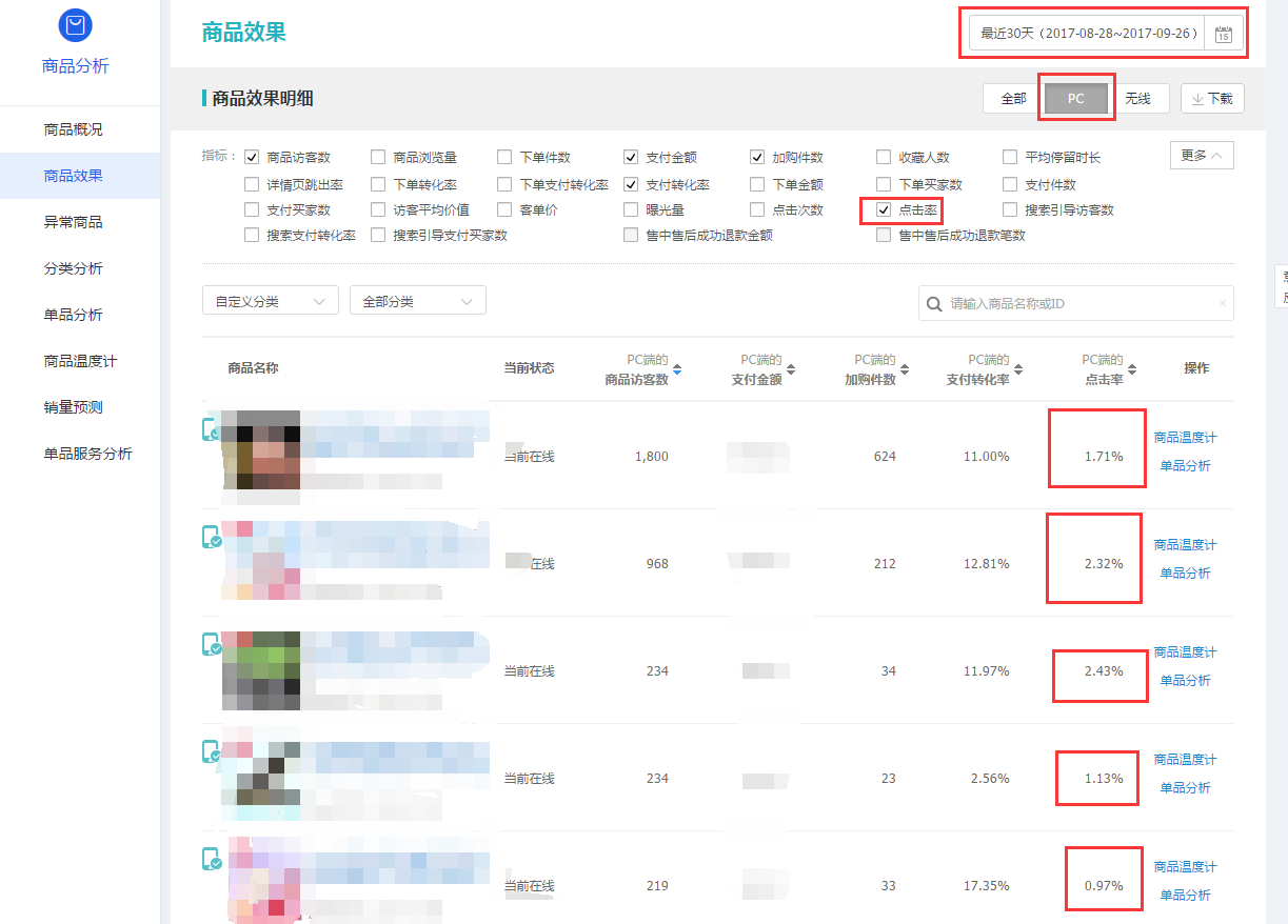 第一種,點擊率,這個尤為重要,觀察是否有爆款潛質(zhì),點擊率是重點,如果沒有點擊,那么無論你的產(chǎn)品有多好,性價比有多高,詳情頁的視覺多好,沒用,請記住,一點用沒有,一切都需要先點擊,才會形成后面的成交。