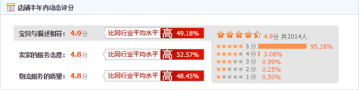 還有就是大家要知道店鋪的DSR動態(tài)評分是會影響你的搜索排名的。而有的商家說我的DSR都是好的,都是紅的怎么會出問題呢?那么這里大家就進入了一個誤區(qū),是誰說DSR只要是紅的就沒事的,要知道這個DSR的評分是代表著消費者對產(chǎn)品和店鋪的整個滿意度,如果說出現(xiàn)了持續(xù)的下滑趨勢,那么你就需要去注意了。而有很多的時候,你并沒有出現(xiàn)違規(guī)降權(quán),,但是店鋪的搜索流量卻在不斷的下滑,這個時候你就需要去看下你的店鋪的DSR動態(tài)評分是不是出現(xiàn)了持續(xù)下滑的趨勢。